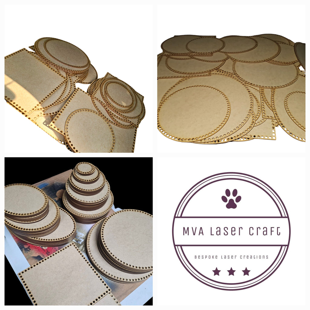 Create a beautiful handmade Crochet Baskets with our laser-cut crochet basket bases! Made to order from 3mm Pine-based Blonde MDF, we offer various sizes (and also offer custom sizes) with 6mm or 8mm holes for easy crocheting.